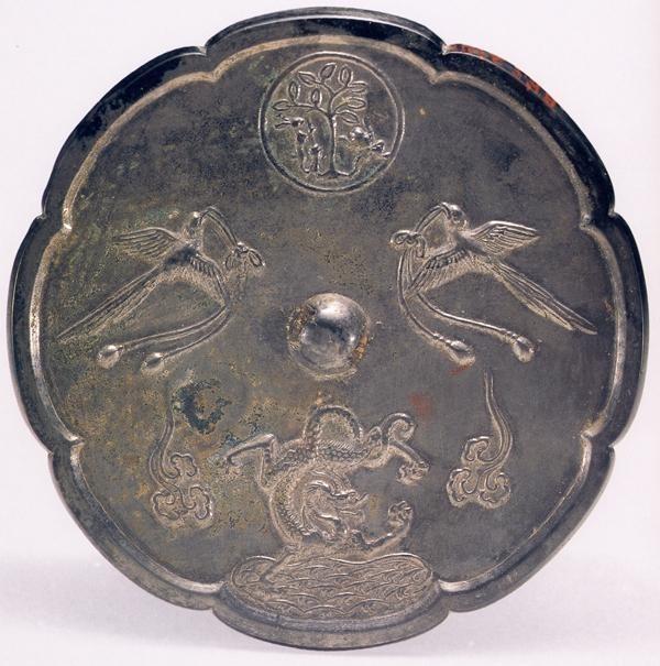 月宫镜还有一种八瓣菱花的镜形,外轮廓如鲜花绽放,花瓣外露。其形制美轮美奂,装饰意味浓厚,仿佛现代制作月宫题材的墙上挂盘。